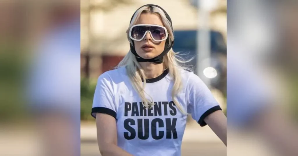 Recreate Julia Fox’s iconic “Parents Suck” look! This costume is instantly recognizable and perfect for those who love to make a statement. All you need is a simple white t-shirt with the words “Parents Suck” scrawled across it, a pair of oversized sunglasses, and your most stylish pair of jeans.