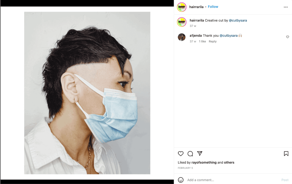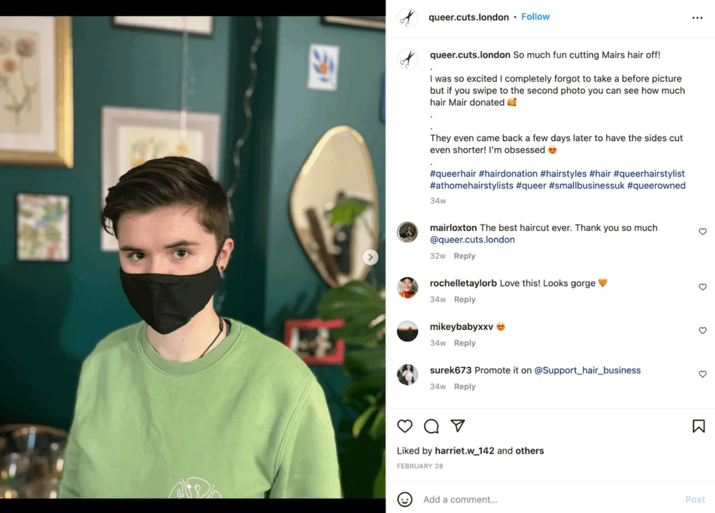 Find LGBTQ-friendly or queer-owned salons and barber shops if there are some near you. If you’re trans or gender non-conforming, make sure to check out Strands for Trans. There are even amazing organisations like Project Q in Los Angeles that help queer youth with haircuts, wigs and mental health support. You don’t need to have your hair cut by a stylist specialising in queer cuts, and it’s not always an option depending on your location,, but it can definitely help if you’re looking for a little more guidance.